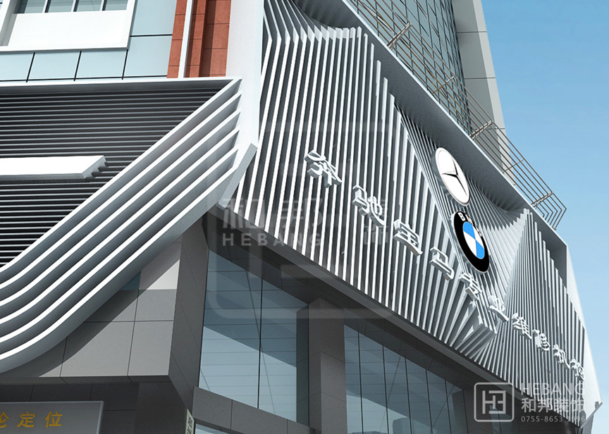 高端大氣的現代設計:以汽車頭部為原型設計的門頭,大膽新穎,創新十足。分區設計,奔馳與寶馬維修店分布兩旁,使整個維修機構美觀大方。